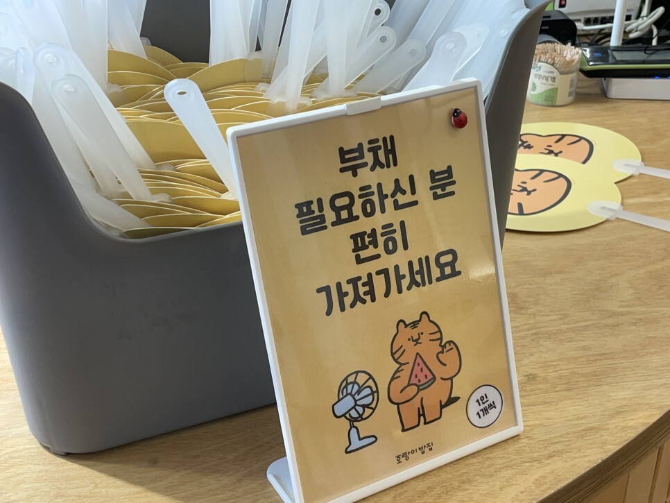 입구부터 귀여운 호랑이들이 반겨주고 있습니다. 제가 방문했을 때는 아직 날이 더웠기 때문에 부채를 나눠주고 계셨어요. 밥을 먹기 전부터 기분 좋은 서비스를 느낄 수 있었습니다.