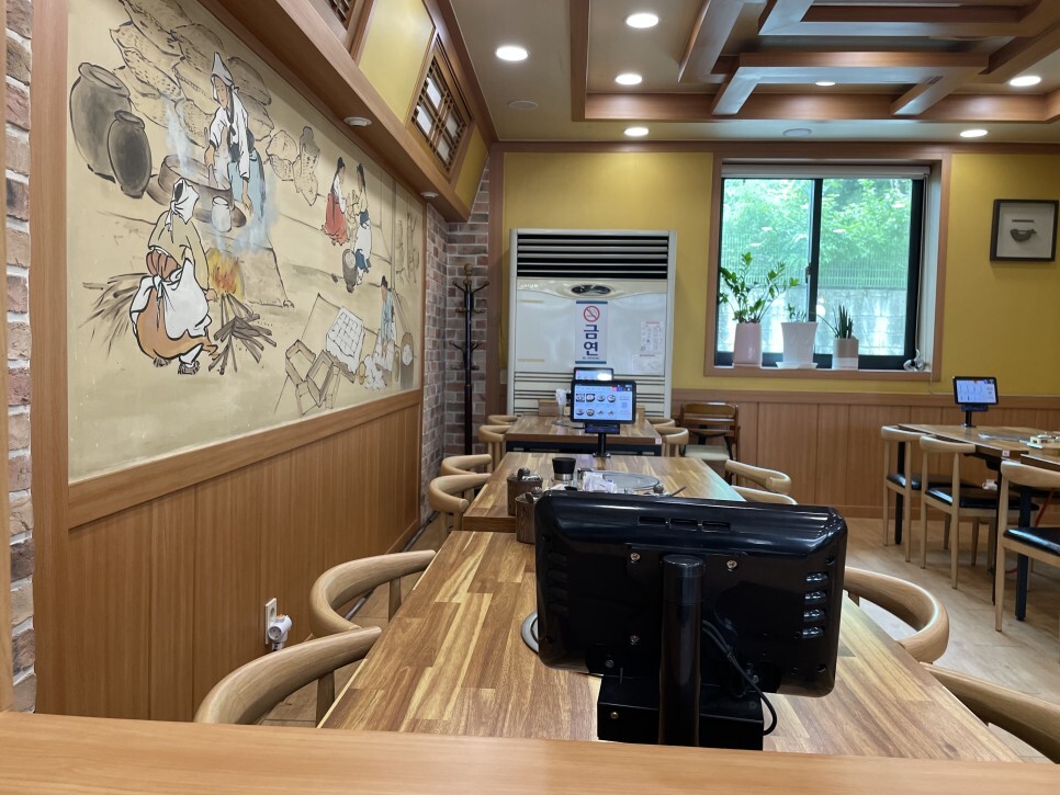 자리마다 키오스크가 구비되어 있어 앉은 자리에서 주문과 카드 결제가 가능합니다.