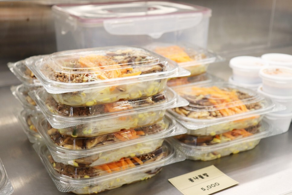 그리고 저는 '못골반찬곳간'에서 한번씩 구입해서 먹는 콩나물밥도 구입했습니다. 채썬 콩나물과 버섯, 당근을 볶았고 거기에 다진고기가 있어 집에 가서 밥만 떠서 비벼먹으면 든든하고 맛깔스러운 한끼를 먹을 수 있답니다.