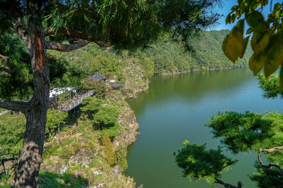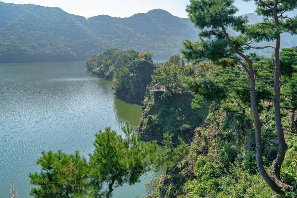아래 대청호가 내려다보이는 곳에는 수면에 햇살이 반짝반짝 빛나보였습니다.