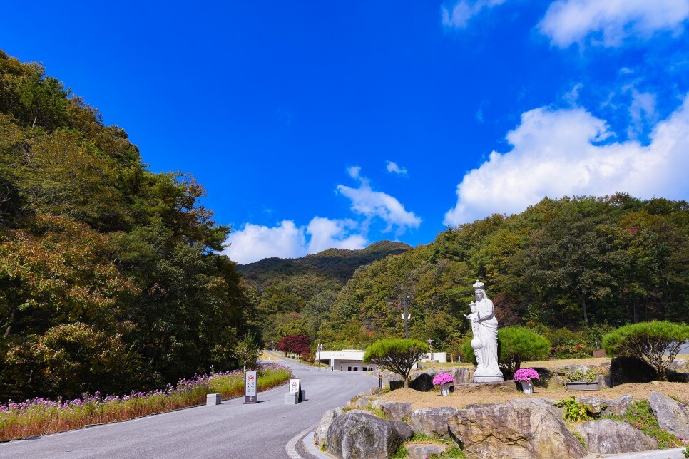 오늘의 마지막 사진은 성지에서 만난 코스모스입니다. 가을 단풍도 즐기면서 산책할 수도 있고 코스모스도 만날 수 있으며 중간중간 쉬어 갈 수 있는 쉼터도 있으니 가족여행지로 조용한 여행을 원한다면 추천하고 싶은 곳입니다.