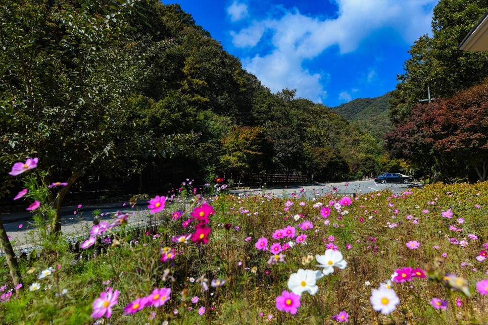 주차장에는 코스모스도 예쁘게 피어 있네요.