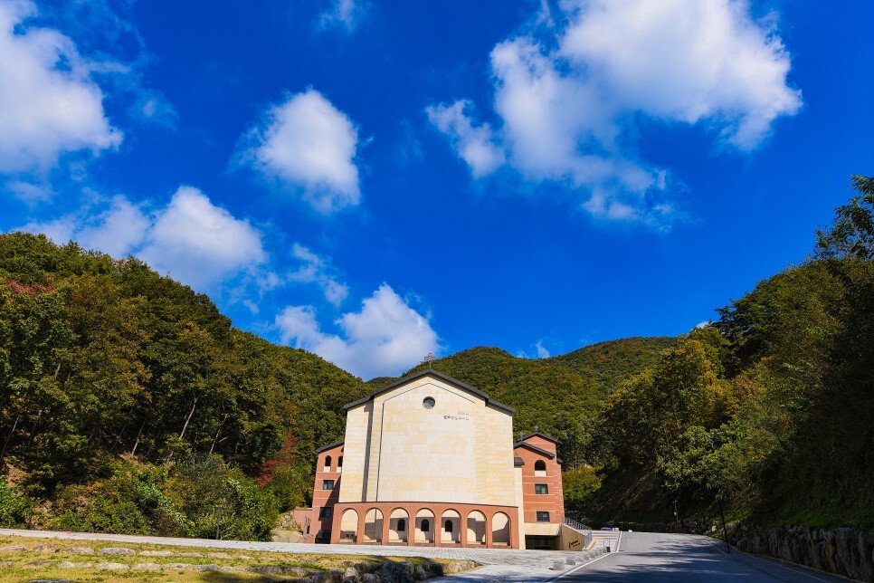 성체조배실 가는 길에 조금은 색다른 성모상도 보이네요. 미리내 성모성심수녀회 건물도 보이네요. 여기는 가보지 않고 멀리서 사진만 담았습니다.