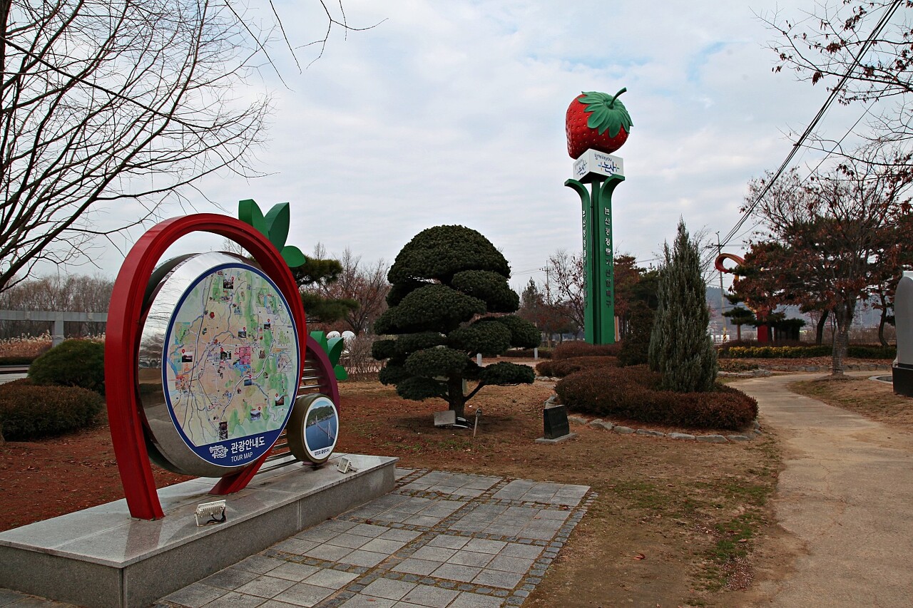 탑정호 출렁다리를 지나 수변생태공원으로 가다 보면 왼쪽에 딸기향농촌테마공원이 자리하고 있답니다. 논산의 특산품인 딸기에 대한 여러가지를 만날 수 있는 공간입니다.