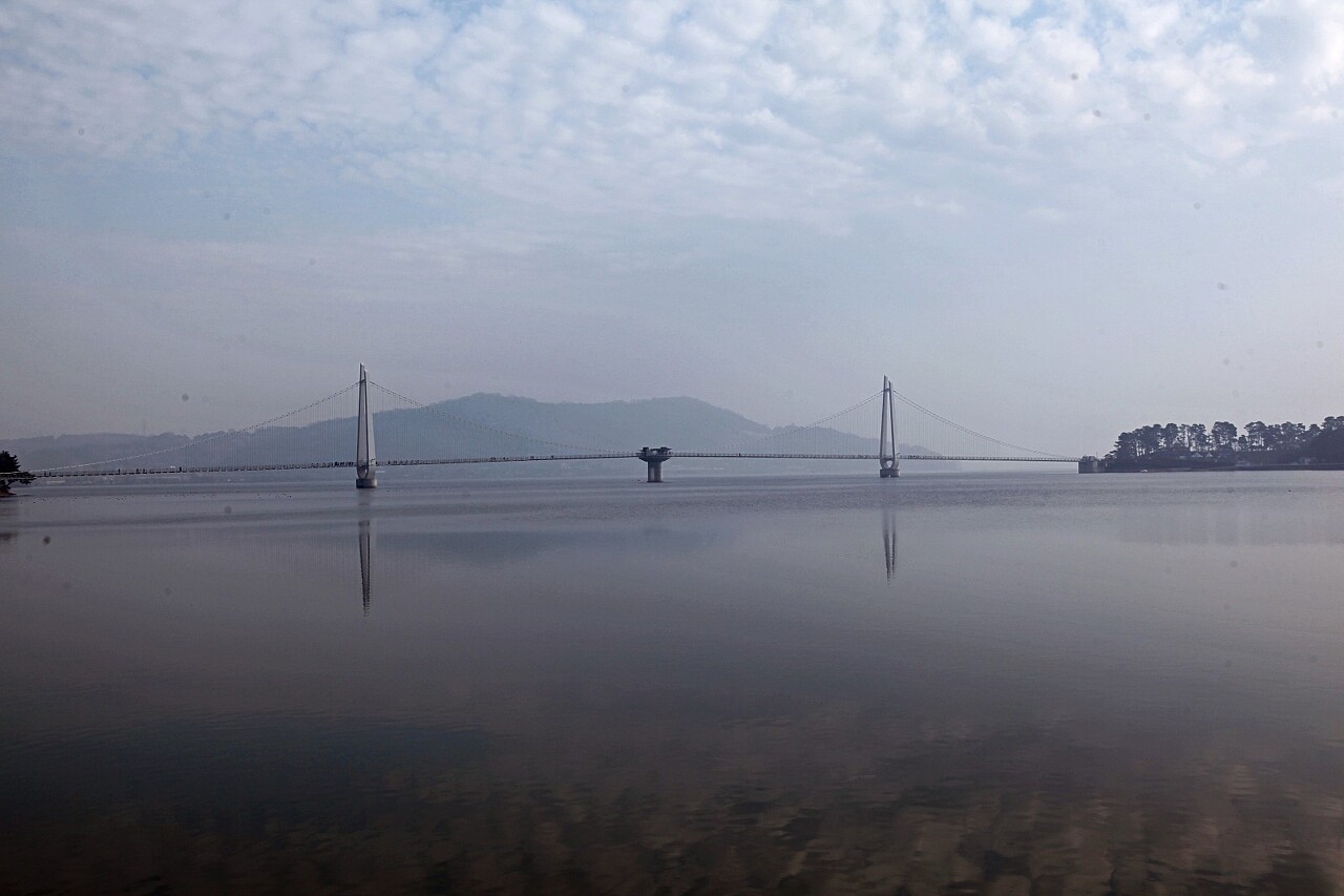 탑정호 출렁다리 - 논산의 명소가 되었습니다. 오른쪽이 남쪽이고 왼쪽이 북쪽입니다. 주차장에 주차하고 아침 탑정호 모습을 담았습니다.