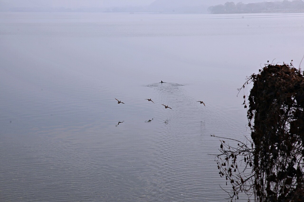 사진을 찍는데 물가에 앉아 쉼을 하던 철새들이 놀라서 물을 박차고 날아오릅니다. 겨울에 찾아오는 철새들은 한편으로는 걱정이 되기도 하는 손님들이지요.