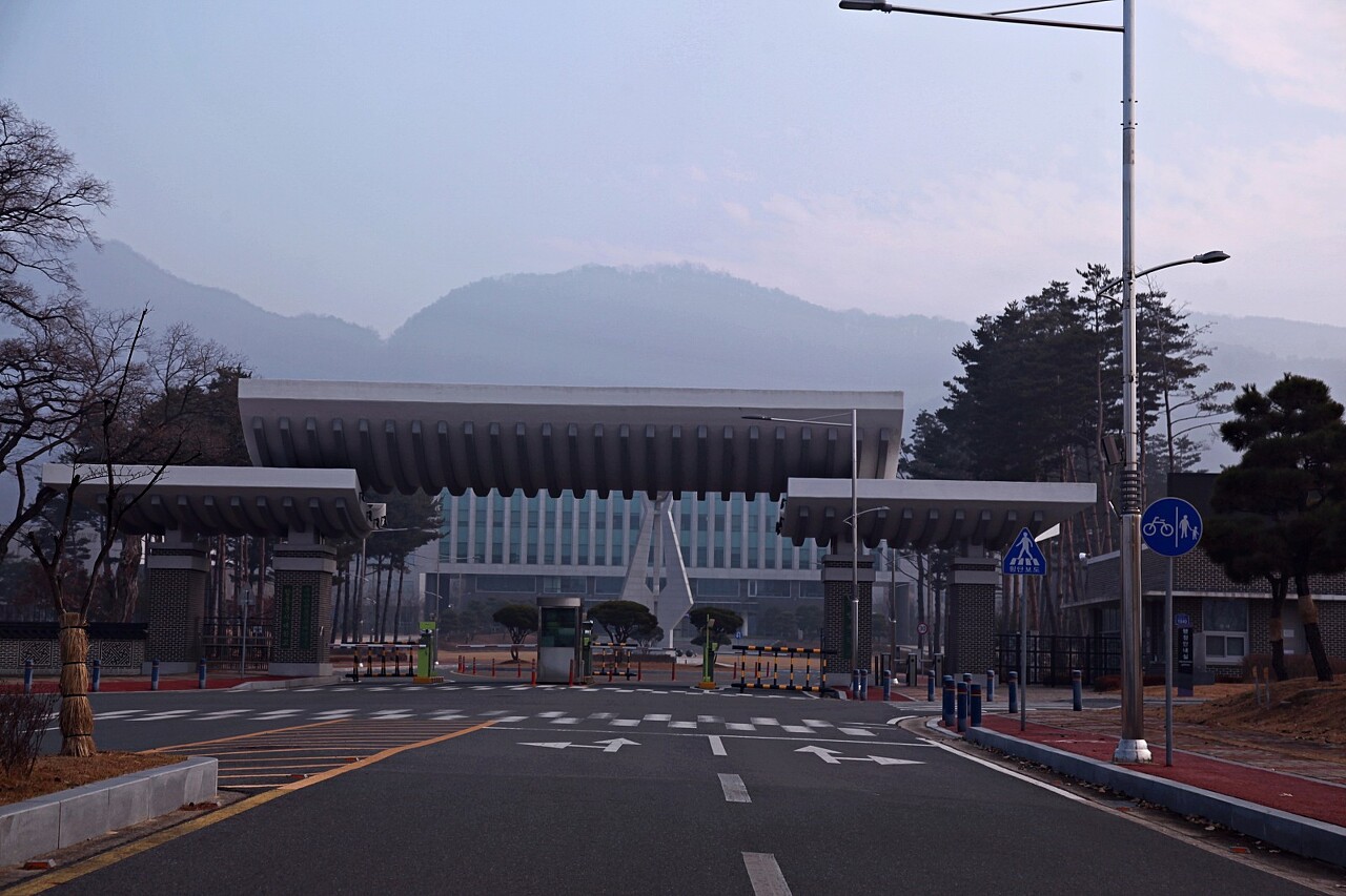 12월 둘째 주 주말 탑정호 드라이브는 우리 군의 고급간부 교육현장인 국방대학교에서 출발합니다. 국방대학교가 논산 양촌면에 자리 잡은 시간도 오래되었네요. 국방대학교 정문에서 잡아 본 모습입니다. 이곳에서 출발해 탑정호를 둘러싼 겨울 길 드라이브를 시작합니다.
