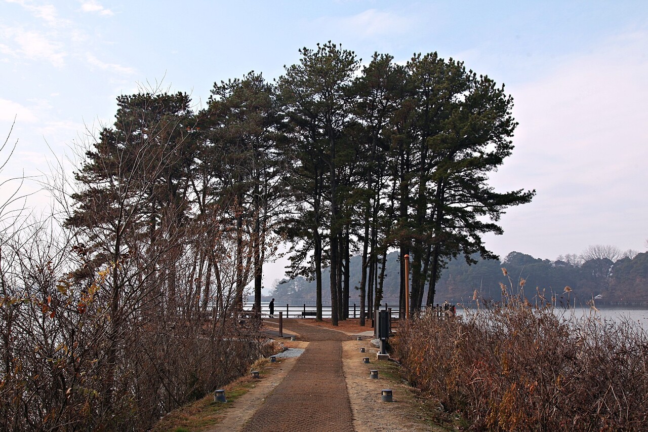 탑정호 둑을 지나 조금 달리면 나오는 이곳은 노을섬입니다. 이곳에서 탑정호 노을을 보는 것도 아름다운 풍경을 만날 수 있답니다. 걸어서 갈 수 있고 멋진 소나무 숲 그리고 지는 탑정호 노을을 감상할 수 있는 나무의자들이 설치되어 있습니다. 지나는 길에 잠시 쉬었다 갑니다.