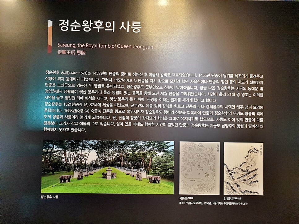 사릉 역사문화관에 도착합니다. 조선왕릉과 사릉의 조성 이야기, 단종과 정순왕후의 사랑 이야기가 자세하게 소개됩니다.
