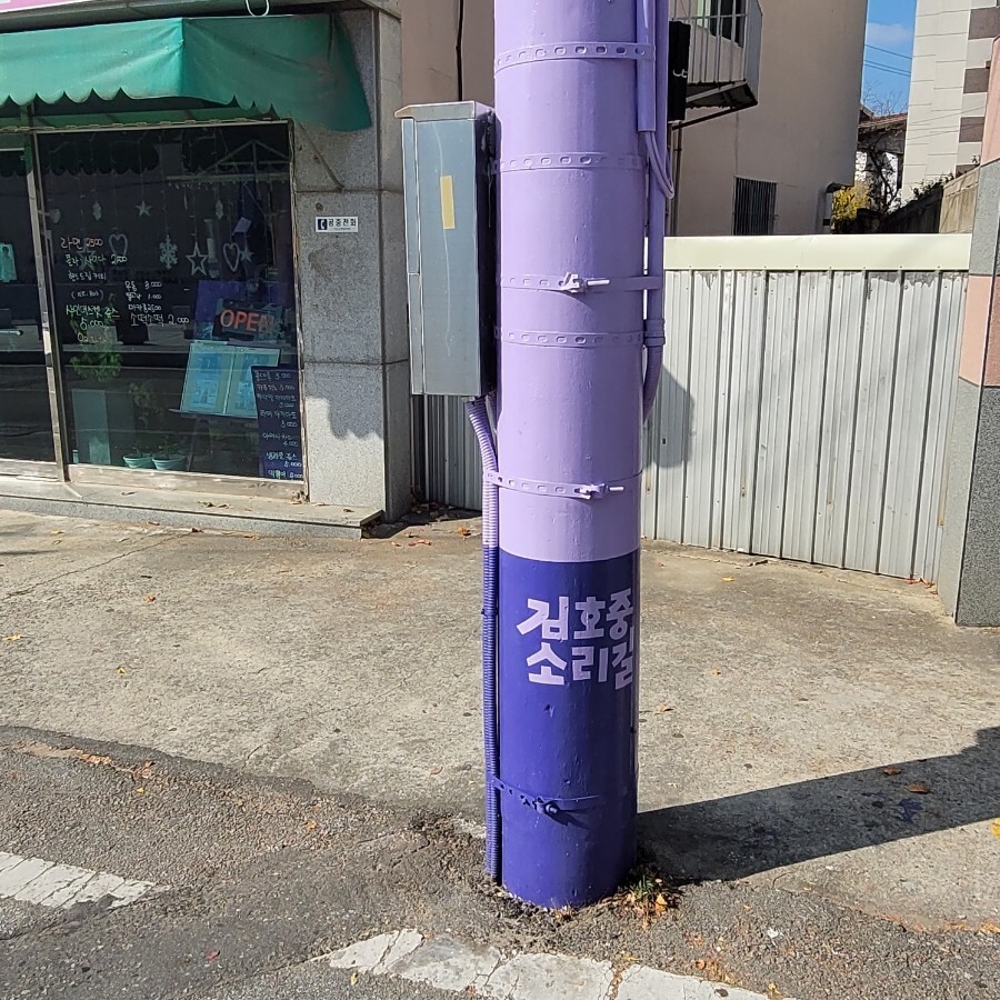 보라색의 공중전화 부스와 우체통이 반겨준답니다!