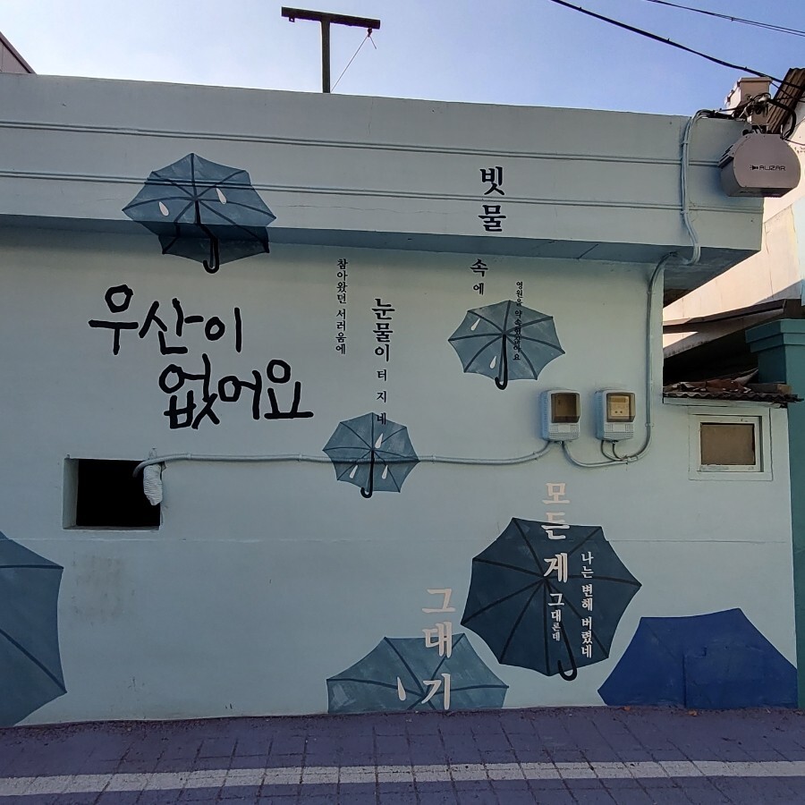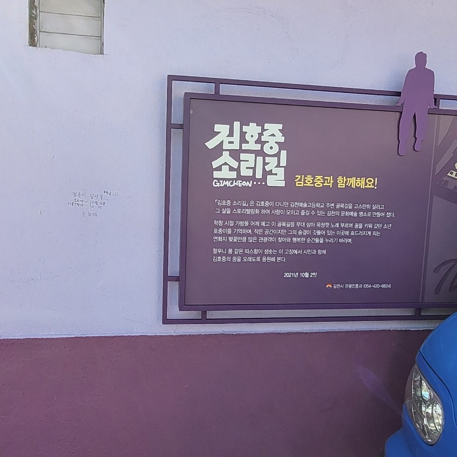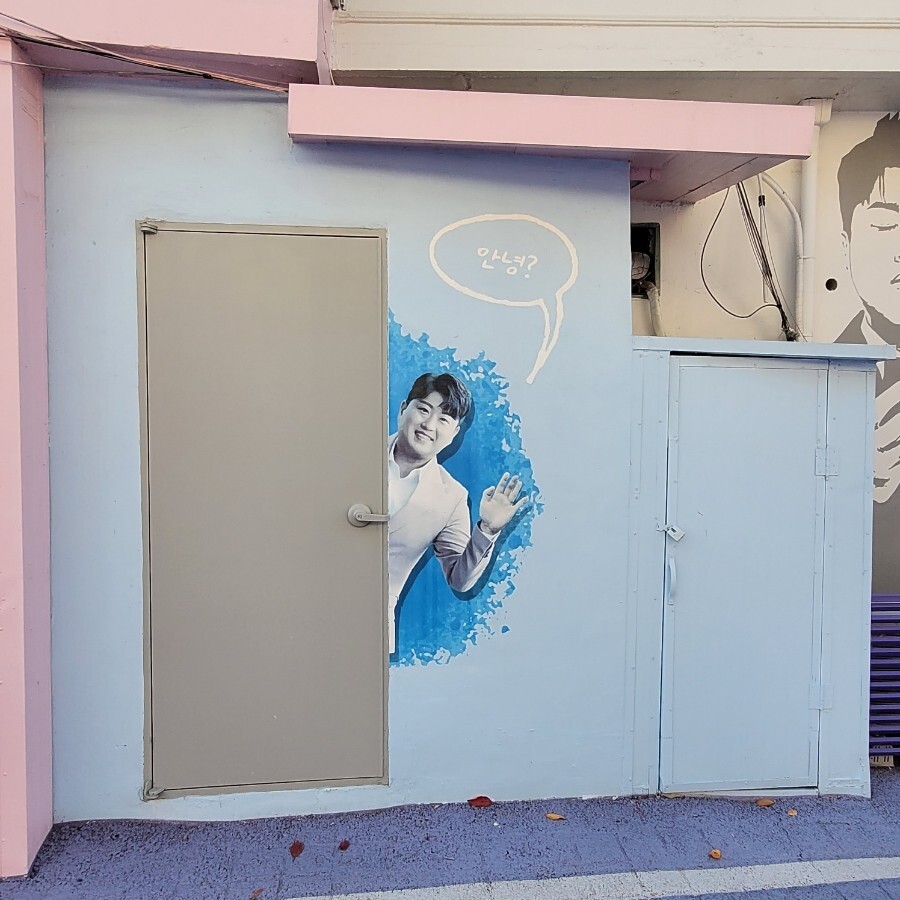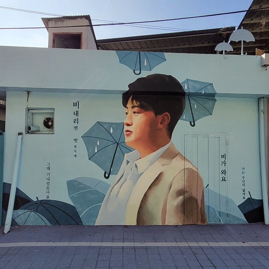 벽화 곳곳에 김호중의 노래가 적혀있습니다.