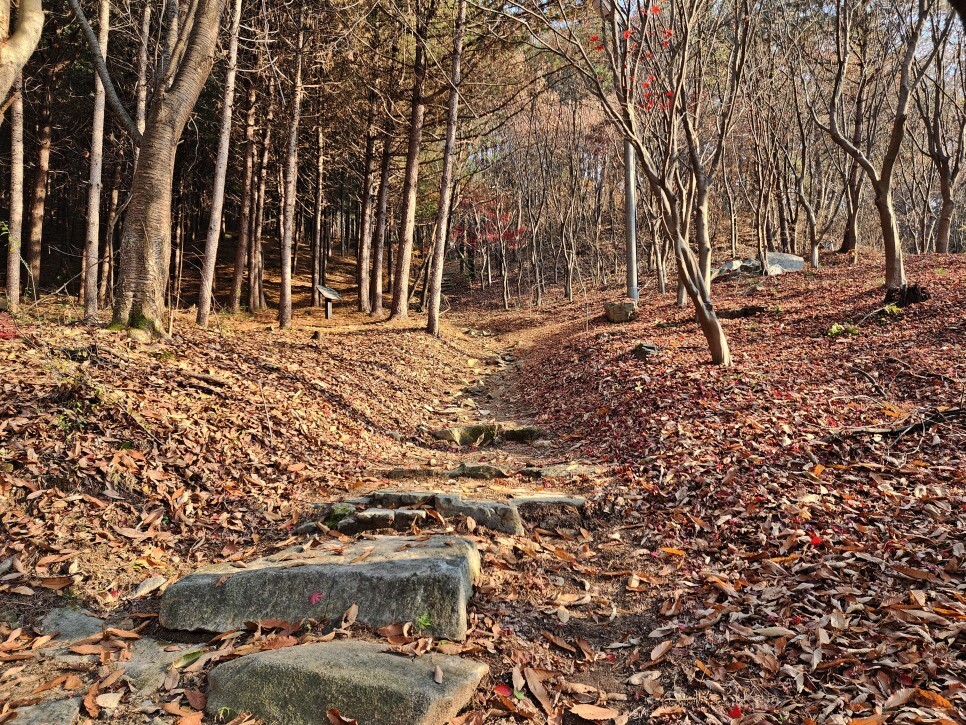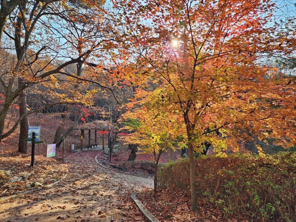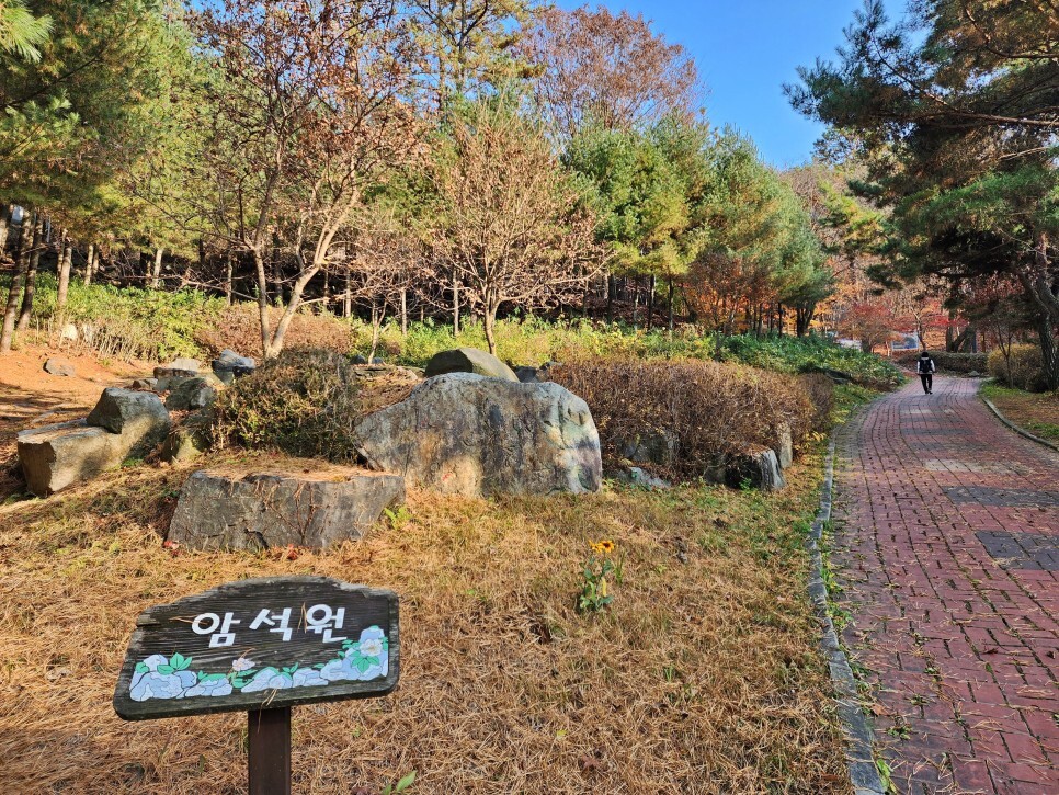 낮은 언덕길을 따라 약 300m 정도 오르면 도시산림공원 입구에 이르게 되는데 다양한 수종에 물든 고운 빛깔의 단풍과 암석원 등의 볼거리가 자꾸만 발걸음을 멈추게 합니다.