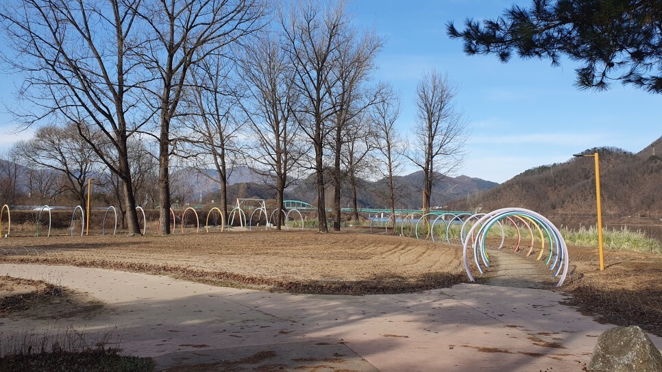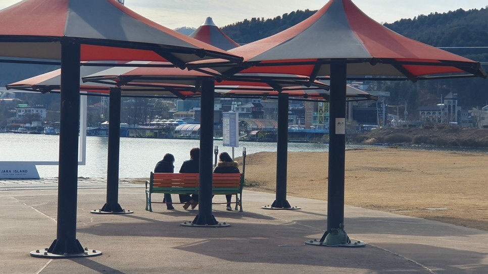 자라섬 남도 전역을 거미줄처럼 연결하고 있는 산책로 그 끝에는 사진과 같이 멋진 포토존과 더불어 북한강 전경을 구경할 수 있는 남도 선착장이 자리하고 있습니다. 해당 장소는 자라섬 전역을 통틀어 가장 멋진 북한강 뷰를 감상할 수 있는 곳인데요, 제가 방문했던 날에는 한파가 들이닥치는 매서운 겨울날씨가 아니었던 탓에 옅은 물안개가 피어오르거나 얼어붙은 북한강의 모습은 구경할수는 없었습니다. 지금처럼 건조한 겨울날보다는 눈이 소복하게 내린 날에 방문하는 것이 더 좋을 것으로 보였던 12월의 자라섬 남도. 남도를 한바퀴 도는데 걸린 시간은 약 20분이었으며 12월의 남도의 모습을 소개하는 글은 여기서 마치도록 하겠습니다. 긴 글을 읽어주셔서 감사드리며 장소와 관련해 궁금한 점이 있으신 분들은 댓글로 꼭 알려주세요!