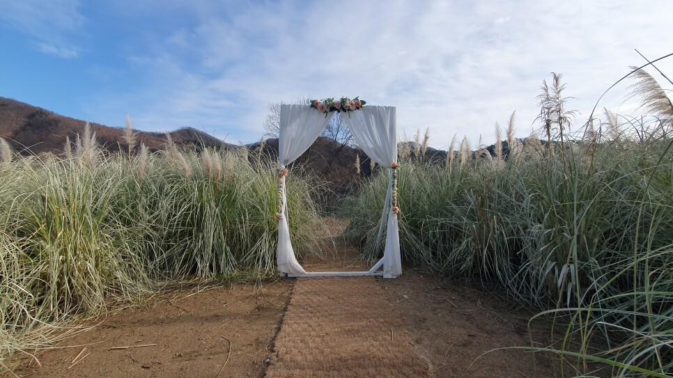 ▲선착장으로 향하는 길목에 마주한 팜파스 그라스길
