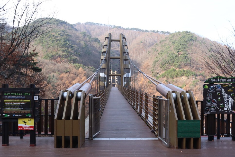 좌구산에 다양한 시설들이 있지만, 그 중 가장 좋았던 곳은 바로 ‘명상구름다리’입니다. 높은 구름다리 위에서 바라보는 풍경은 마음까지 뻥 뚫리는 기분이 듭니다. 구름다리의 이용시간은 오전 9시~오후 6시(동절기 기준)이니 이 점도 참고하시기 바랍니다.
