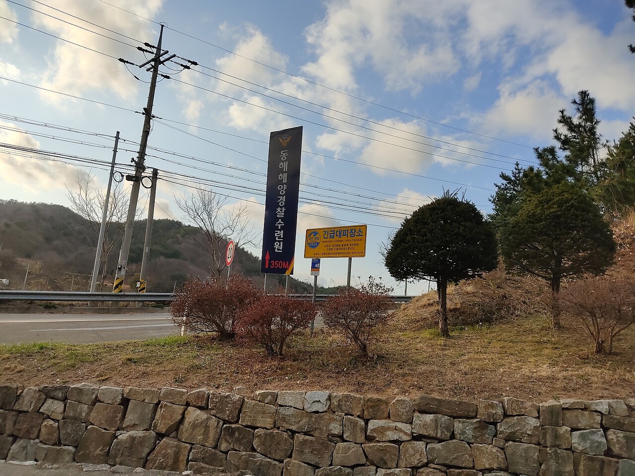 삼척 가볼만한곳 공양왕릉 입구에 들어오시면 동해해양경찰수련원이 350m 앞에 있다는 현판과 긴급대피장소현판이 보입니다. 동해해향경찰수련원은 참크고 건물도 신식에 깨끗하고 좋아보이는 곳인지라 경찰을 지인으로 두고있는 분들은 이용하면 참 즐거울것 같았습니다. 뷰도 참 좋은것 같구요. 가격도 싼것 같더라구요.