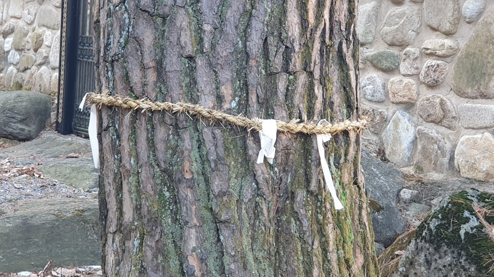 ▲해당 나무에만 새끼줄과 재단을 따로 만들어놓은 것을 봐서