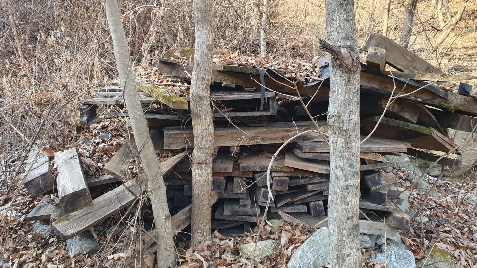 ▲한켠에는 이전에 있었던 전각을 해체한듯한 목재들이 쌓여 있습니다
