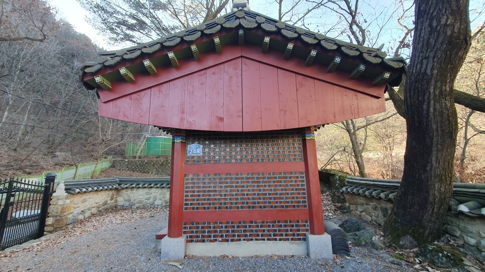 산신당과 성황당을 둘러보면서 두 장소의 공통점 하나를 발견하게 되었는데요, 그것은 전각 주변에 자라난 커다란 나무들이었습니다! 해당 장소들이 오랜시간 마을의 안녕을 기원하는 장소였다는 것을 주변에 거대한 나무들이 방증해주는 것 처럼 보이는데요. 우선 산신당의 경우 아래의 사진에서도 확인할 수 있듯이 커다란 10그루 이상의 굴참나무가 전각을 수호하고 있는 듯한 모습을 보이고 있었으며, 성황당 앞에는 300년이 훨씬 넘은 소나무 두그루가 자라고 있어 다른 장소들과 구분되는 영험한 기운이 맴도는 듯 했습니다. 가평에서 유일하게 한 마을에 산신당과 성황당이 함께 존재하는 가일리 마을의 전각들! 여러분들도 어비계곡 산새소리길 혹은 물소리길에 방문하신다면 해당 전각들을 함께 구경해보시길 바라며 이상 글을 마치도록 하겠습니다. 긴 글을 읽어주셔서 감사드리며 궁금한점은 댓글로 알려주세요~!