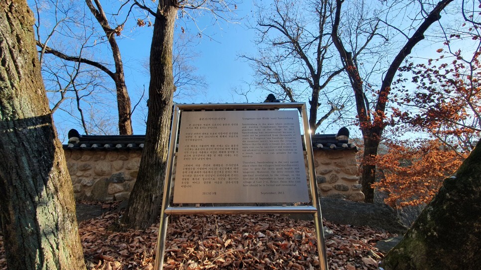 한국은 산이 굉장히 많은 지리적 특성으로 인해서 예부터 산악숭배사상이 두드러졌고, 이로 인해 유명한 산을 중심으로 산신당이 곳곳에 자리해왔다고 합니다. 산새소리길에서 제가 발견한 용문산(어비산) 산신당도 이러한 이유로 조성된 것으로 보이는데요! 해당 산신당은 수천년전부터 내려온 토굴로 만들어진 산신당을 보존할 수 없어서 2013년에 현재의 모습으로 중수하게 되었다고 합니다. 마을 주민들은 매년 음력 구월초하루에 이곳에서 제를 올리며 한해동안 마을의 무사안녕과 무병장수를 기원한다고 하는데요! 여기에 한가지 재미있는 사실(?)이 있다면 용문산의 산신은 여성이며, 이로 인해 제물로 올리는 소는 모두 숫놈으로 사용하고 나아가 제물부터 제를 지내는 모든 준비는 남성이 한다고 합니다. 제를 올리는 모습을 직접 볼 수는 없었지만, 검색으로도 나오지 않는 마을의 향토문화재를 취재 중 발견한 것 만으로도 뭔가 보람이 있었던 그런 장소였습니다!