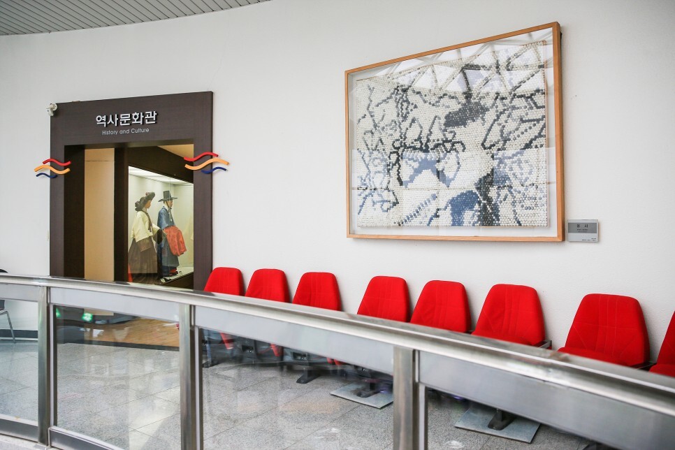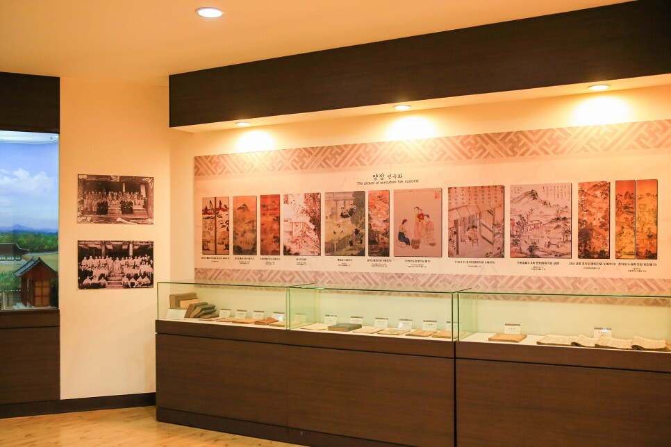 2층에는 역사문화관이 있는데 잠사산업과 관련된 우리 민족의 생활과 풍속에 관련된 전시가 이어지며 잠업에 사용했던 도구, 제사기구의 변천, 누에의 한살이, 누에고치의 종류, 양잠민속화 등 다양한 자료를 볼 수 있습니다.