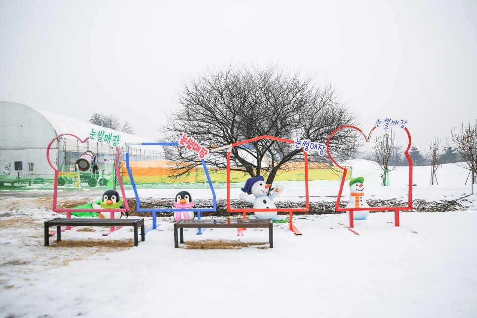 눈썰매만 타다보면 조금 지치기도 하는데 나름 스릴 있는 미니바이킹과 미니기차도 있으니 잠시 쉬며 놀이기구도 탈 수 있고 귀여운 눈사람과 펭귄을 보며 겨울을 즐기기도 합니다.