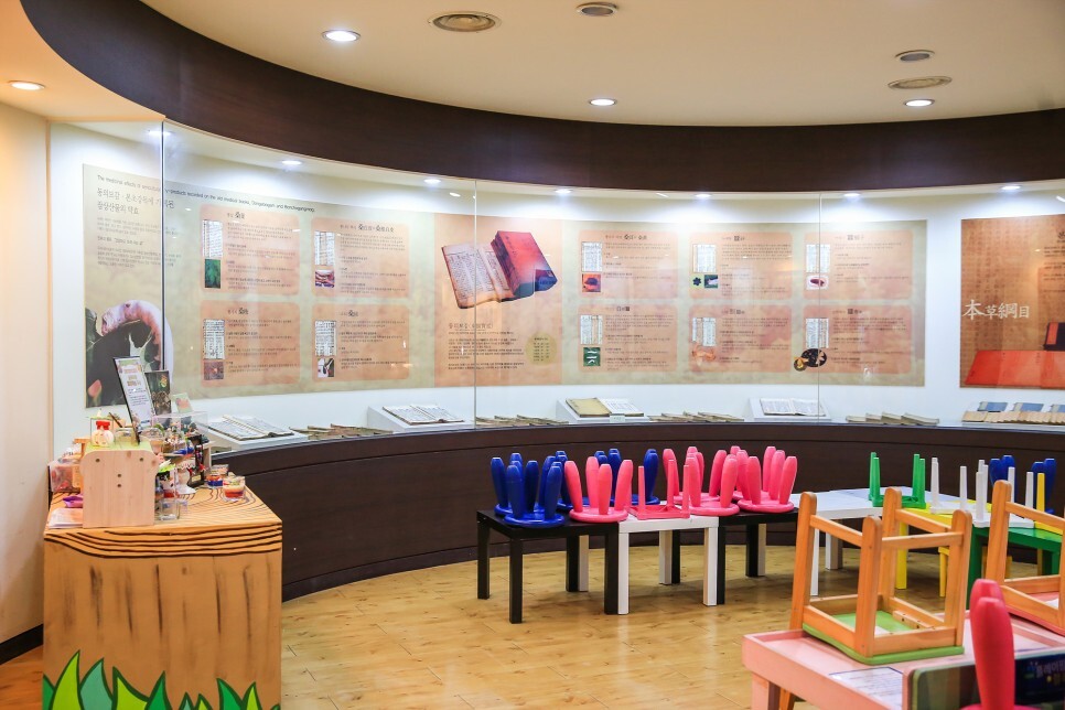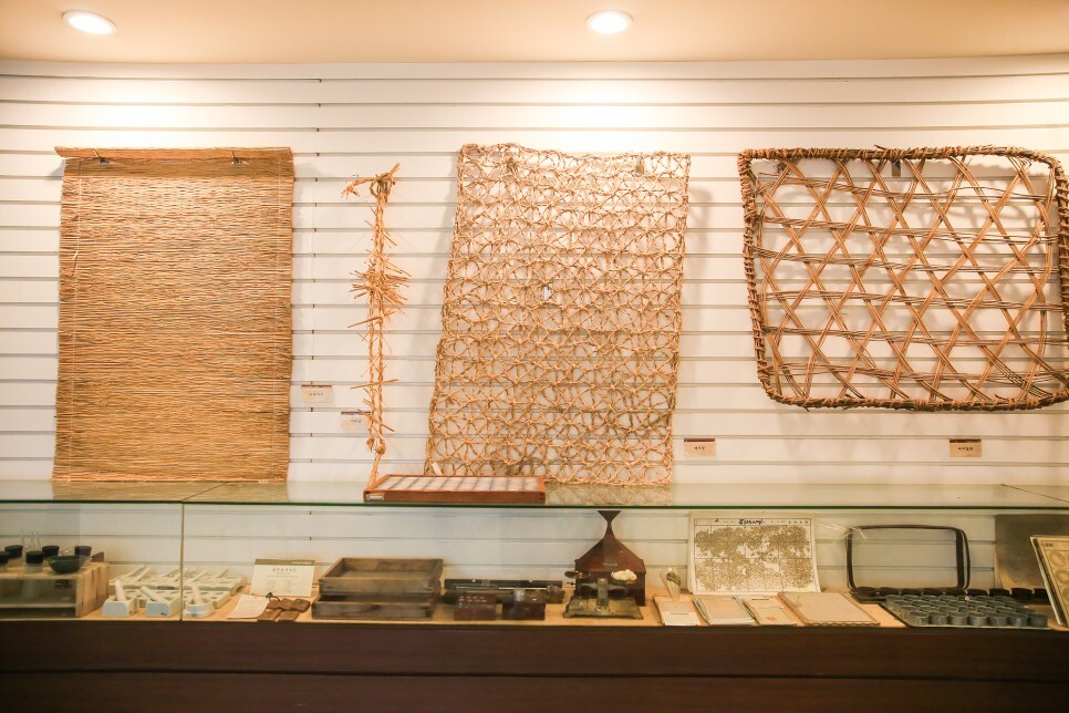잠사박물관 1층과 2층에는 전시실이 있어요. 뽕나무를 재배하여 누에를 기르고 실을 생산하고 가공하는 잠사산업에 대한 이야기가 전시되어 있는데 동의보감과 본초강목에 의하면 뽕잎부터 뽕나무 뿌리, 뽕가지, 열매인 오디까지 잠상산물은 효능이 좋아 약재로 널리 쓰였다고 합니다.