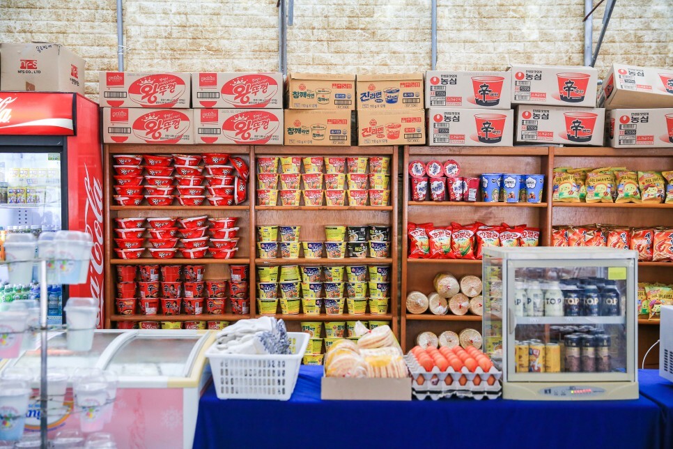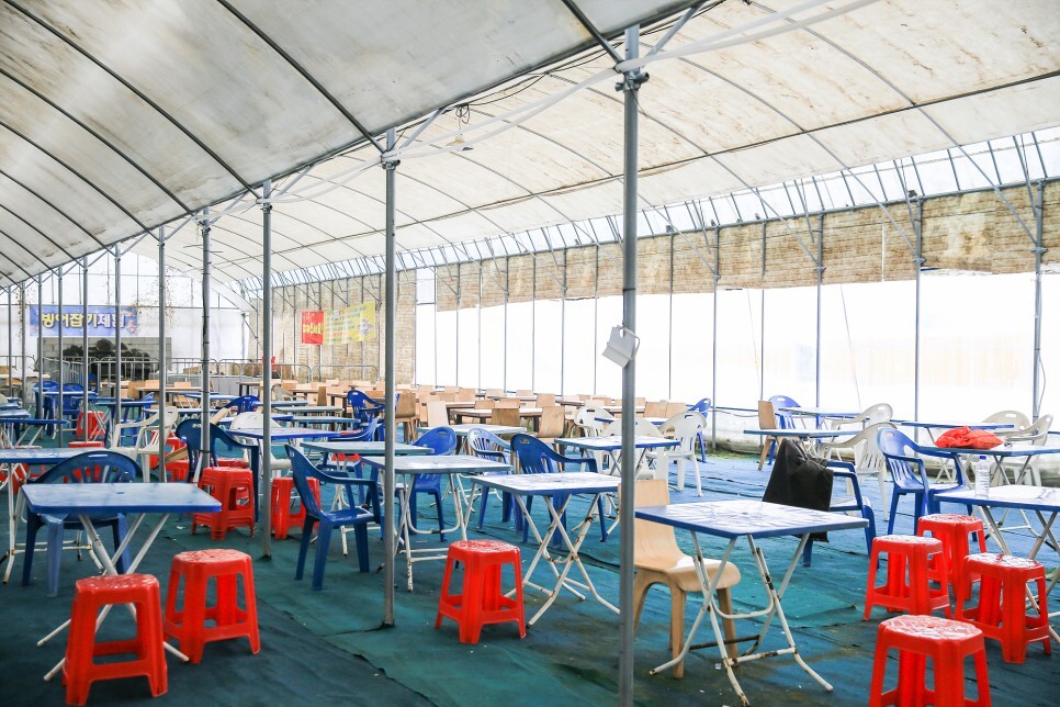 금강산도 식후경, 신나게 놀다 보면 출출해지기도 하는데 쉼터에 떡볶이, 어묵, 회오리감자, 핫도그, 컵라면 등 간식거리를 판매하고 있어요. 자리도 꽤 넉넉하게 마련되어 있습니다.