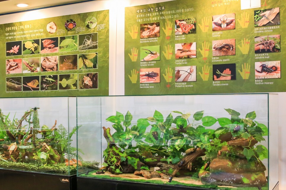 기획전시실에는 세계의 대형 절지류와 위장술이 뛰어난 곤충을 만나볼 수 있습니다.