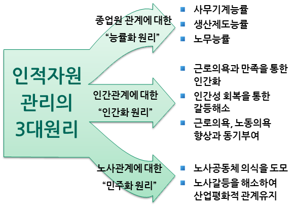 인간화의 원리 노사관계에 대해서는 민주화의 원리 등 대 원리가 적용되고 있다 이러한 , 3 .
