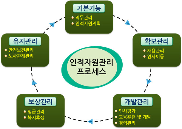 보 선발 고용배치 승진 교육훈련 인사고과 평가 경력개발 임금 급