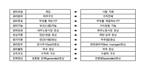 학력과 근속 그리고 온정주의적인 집단주의에 기초한 인사관리에서 이제는 개인의 핵심역량 ,