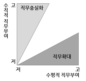 도전적이고 보람 있는 일이 되도록 직무를 구성하는 것을 의미한다 그래서 이것을 수직적 .
