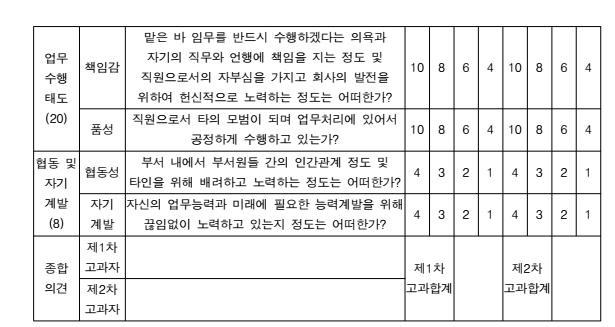 능력 직무성과 적성 등을 평가하게 되므로 인사평가는 어디까지나 종업원이 맡고 있거 , , ,