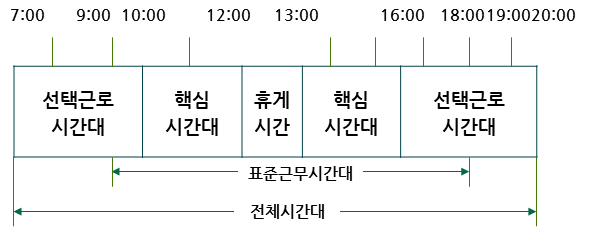 위 내에서 매일의 시작 및 종료시간을 자유롭게 선택해서 일을 할 수 있도록 하는 제도를