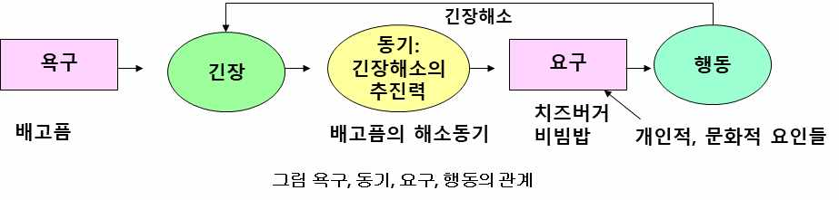 - 실제 상태와 바람직한 상태 간 괴리가 커지면 욕구가 활성화되고, 이로 인한 긴장이 발생