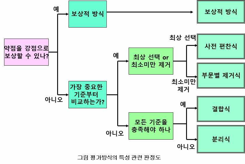 - 가장 중요한 평가기준부터 중요한 순서대로 기준을 적용하여 수용 가능한 최소 수준 미만