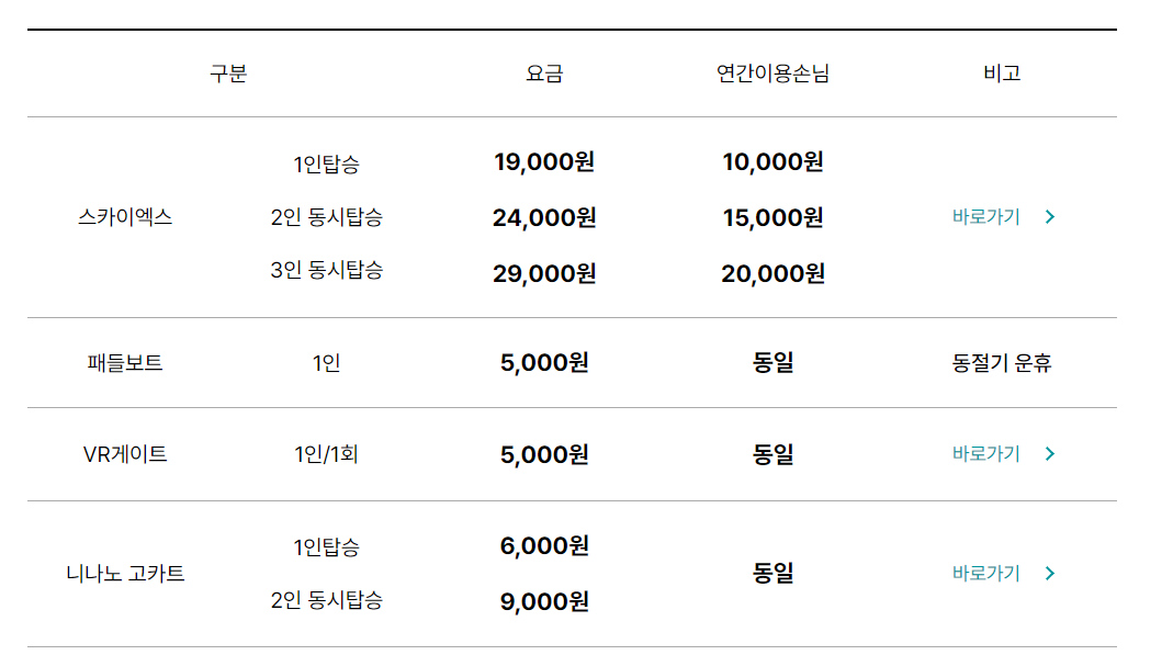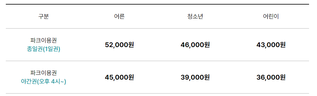 * 서울랜드 요금표