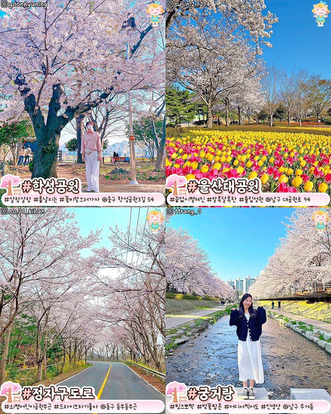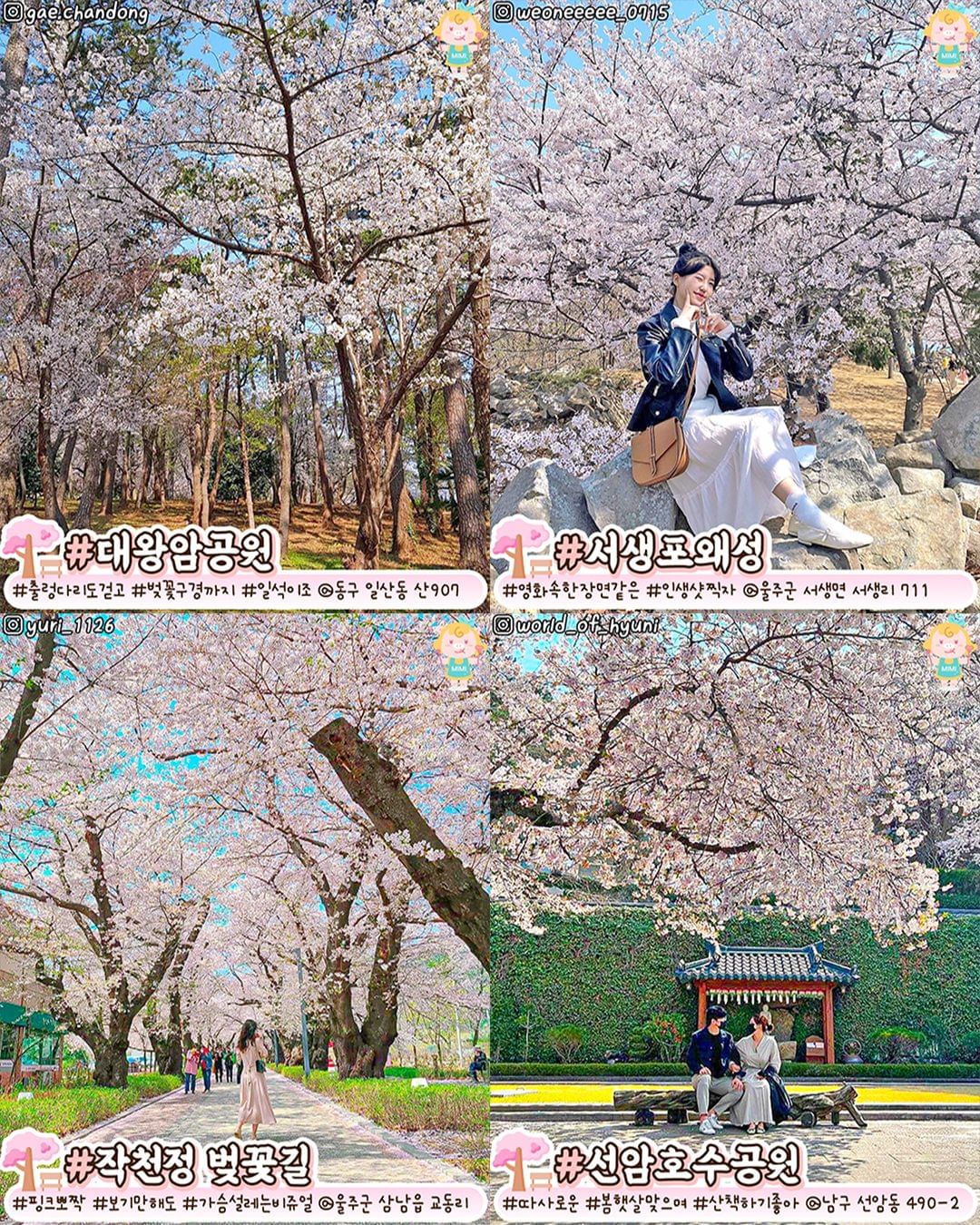 추천 이유: 울산 시내에 위치한 공원으로, 벚꽃나무 외에도 다양한 꽃과 나무가 심어져 있습니다. 산책하기 좋고, 야경도 아름답습니다.