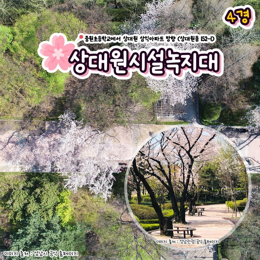 여행 코스: 상대원 시설녹지대에서 벚꽃 터널을 감상 후 분당호수공원 또는 봉우재공원 방문