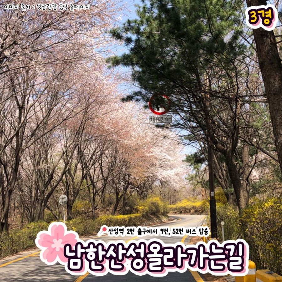추천 이유: 웅장한 남한산성을 배경으로 피어있는 벚꽃의 아름다움을 만끽할 수 있는 명소