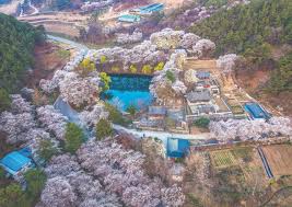 벽화와 조각 작품 등 다양한 예술 작품을 감상하며 벚꽃도 즐길 수 있는 예술 마을
