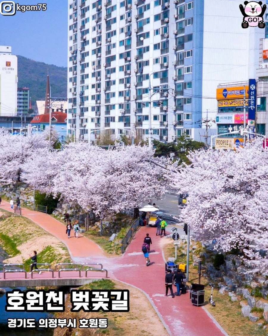●추천 이유: 2.4km 거리에 늘어선 약 800여 그루의 벚꽃나무는 의정부에서 가장 규모가 크고 아름다운 벚꽃 명소입니다.