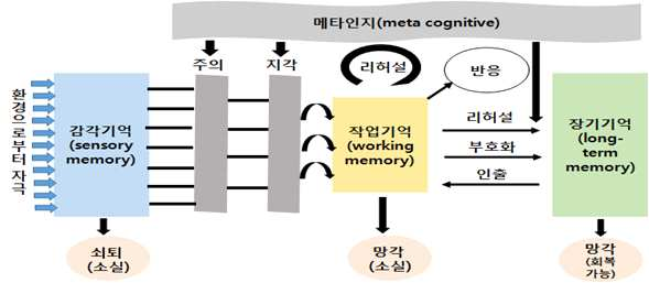 (1) 기억은 감각기억, 작업기억, 장기기억으로 구성, 저장이 잘 되기 위해서 주의와