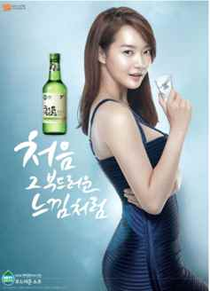 | 소주 광고에 여자 연예인 모델이 많은 이유? 소주에 대한 소비자들의 인식변화에서 시작됨, 소주가 독주로 인식되던 시절에 소 주는 남성들만이 향유하는 술이었음, 그러나 폭음을 조장한다는 안 좋은 인상으로 인해 소주회사들은 알코올 농도를 낮추었고, 이제 소주는 독주가 아닌 부드럽게 한잔 할 수 있는 순하고 부드러운 이미지로 바뀌게 되었음, 이러한 청순하고 깨끗 한 이미지를 위해 깨끗한 인상을 가지고 있는 여자 연예인들을 광고에 사용하게 되었음 ![]() ![]() |