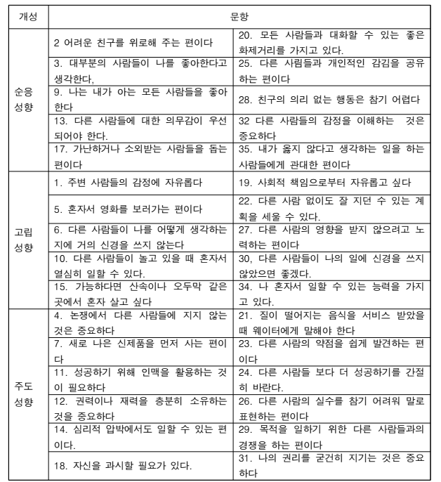 서는 소비자 개성 중 대인관계에 집중할 때 Cohen이 개발한 척도를 활용
