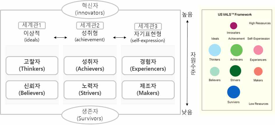 개발한 라이프스타일 분류체계로 시장세분화, 광고전략, 제품 전략에 다양하게 활