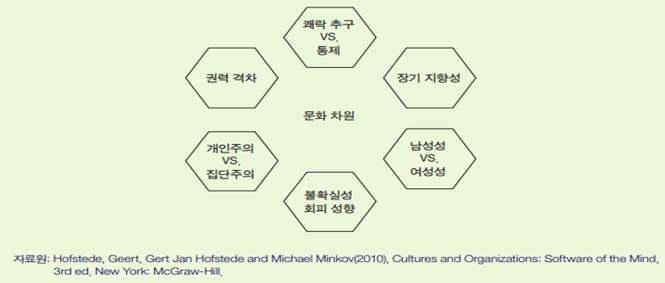 력 격차(power distance), 불확실성의 회피(uncertainty avoidance) 등의 네 개 차원을 문