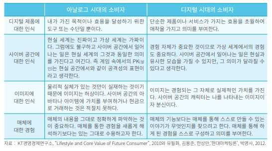 게 소비할 수 있게 된다. 즉, 디지털 시대의 소비자는 디지털 제품, 사이버 공간,