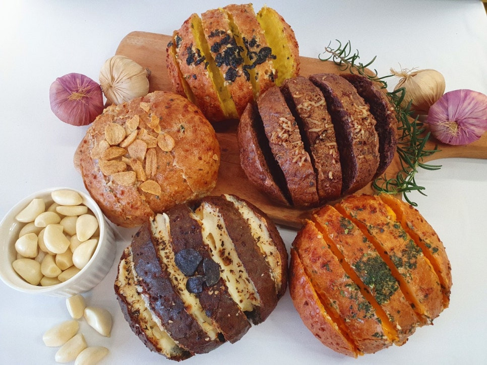100% 단양 마늘로 만든 속 꽉 찬 마늘버터빵은 겉은 바삭, 속은 촉촉!